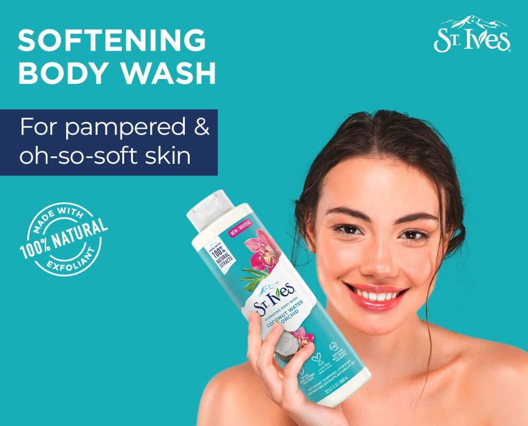 Indulge in a refreshing and nourishing shower experience with St. Ives Coconut Water & Orchid Body Wash. Our plant-based cleansers and natural extracts hydrate and clean your skin with a sudsy lather. Plus, it doubles as a hand soap for your convenience. Free from harsh chemicals and animal-derived ingredients.