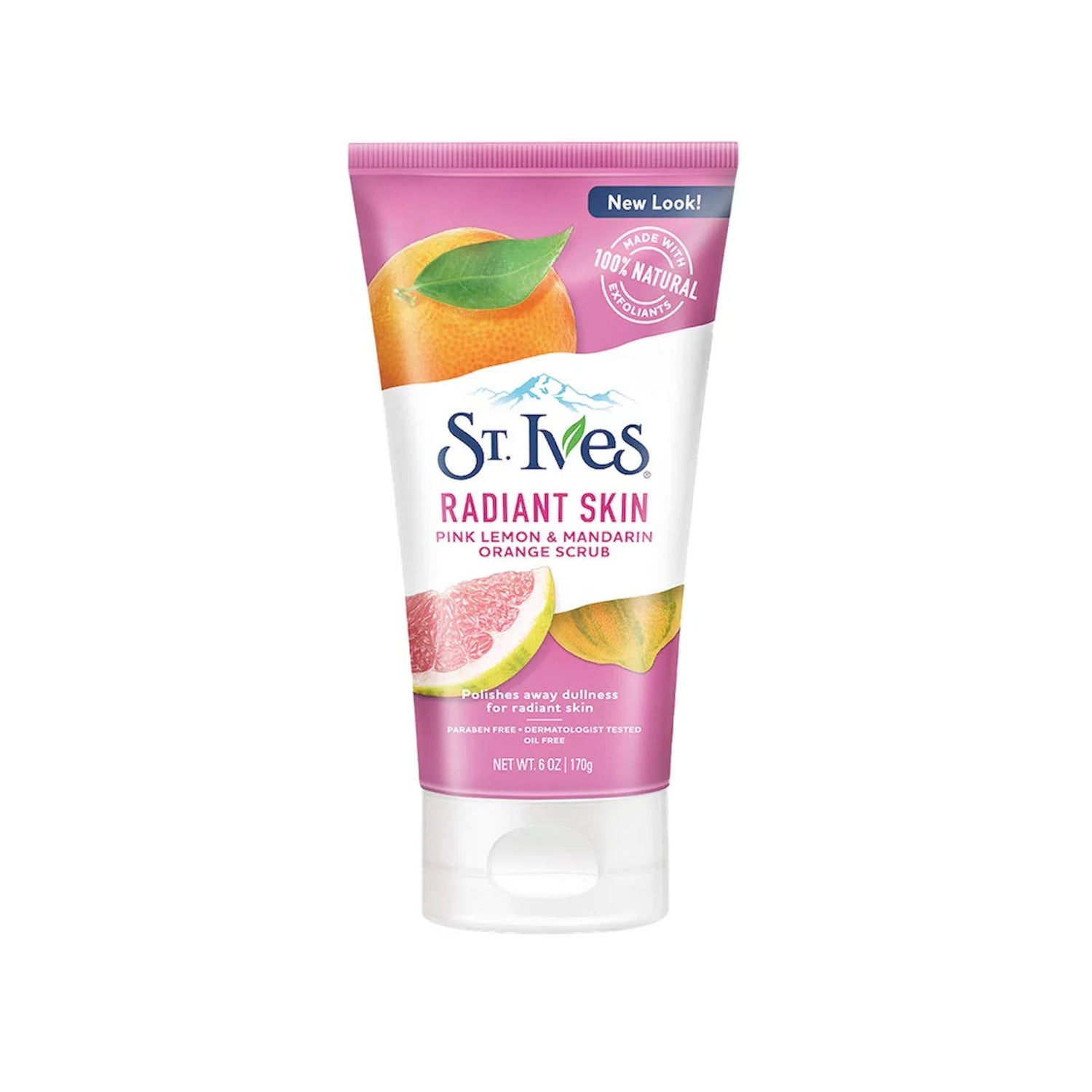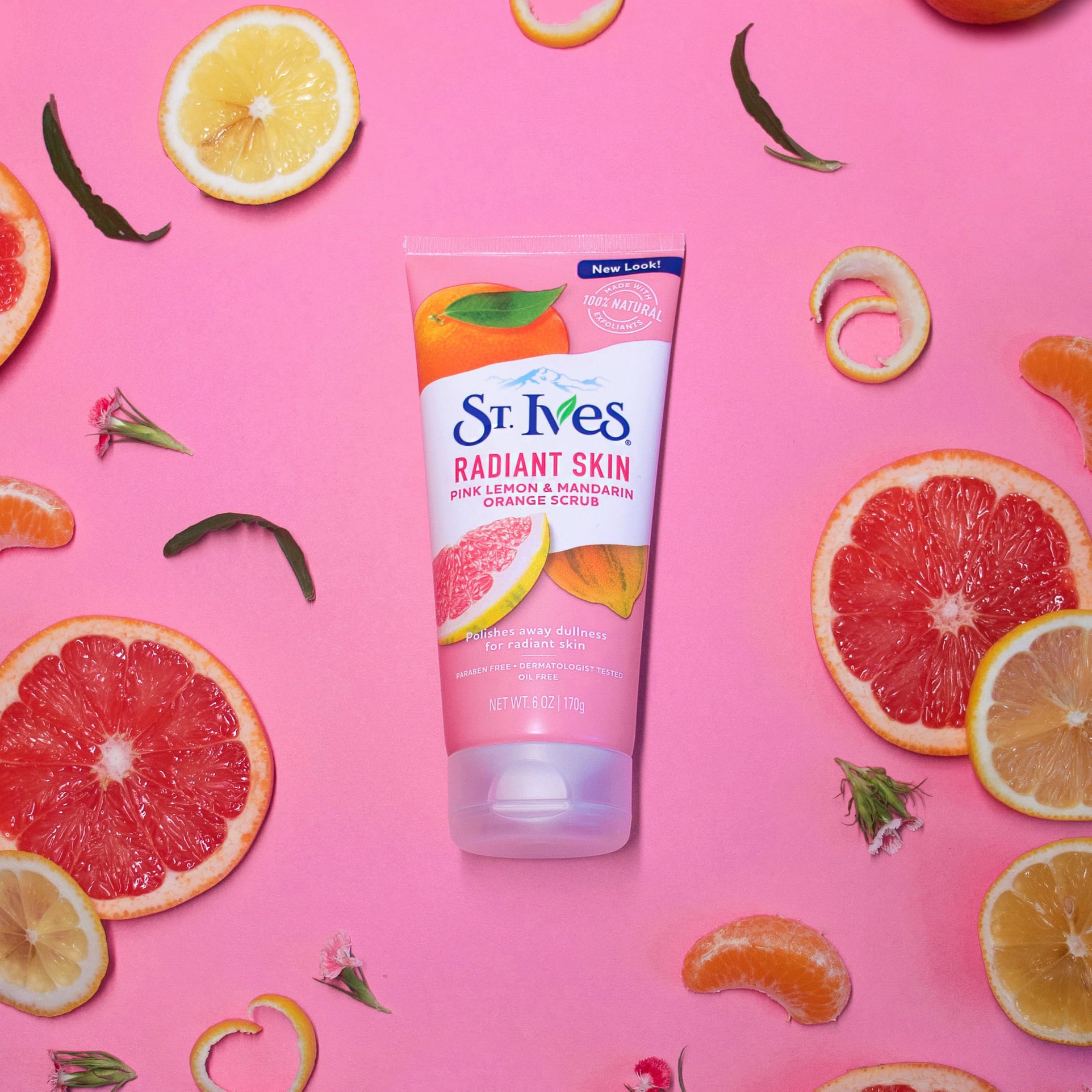 St Ives Radiant Skin Pink Lemon & Mandarin Orange Scrub gently exfoliates with 100% natural exfoliants to brighten and refresh dull, dry skin. This paraben-free, oil-free, dermatologist-tested scrub polishes away dead skin cells for a smooth, glowing complexion. Perfect for daily radiant skin care.
