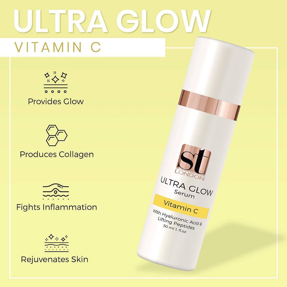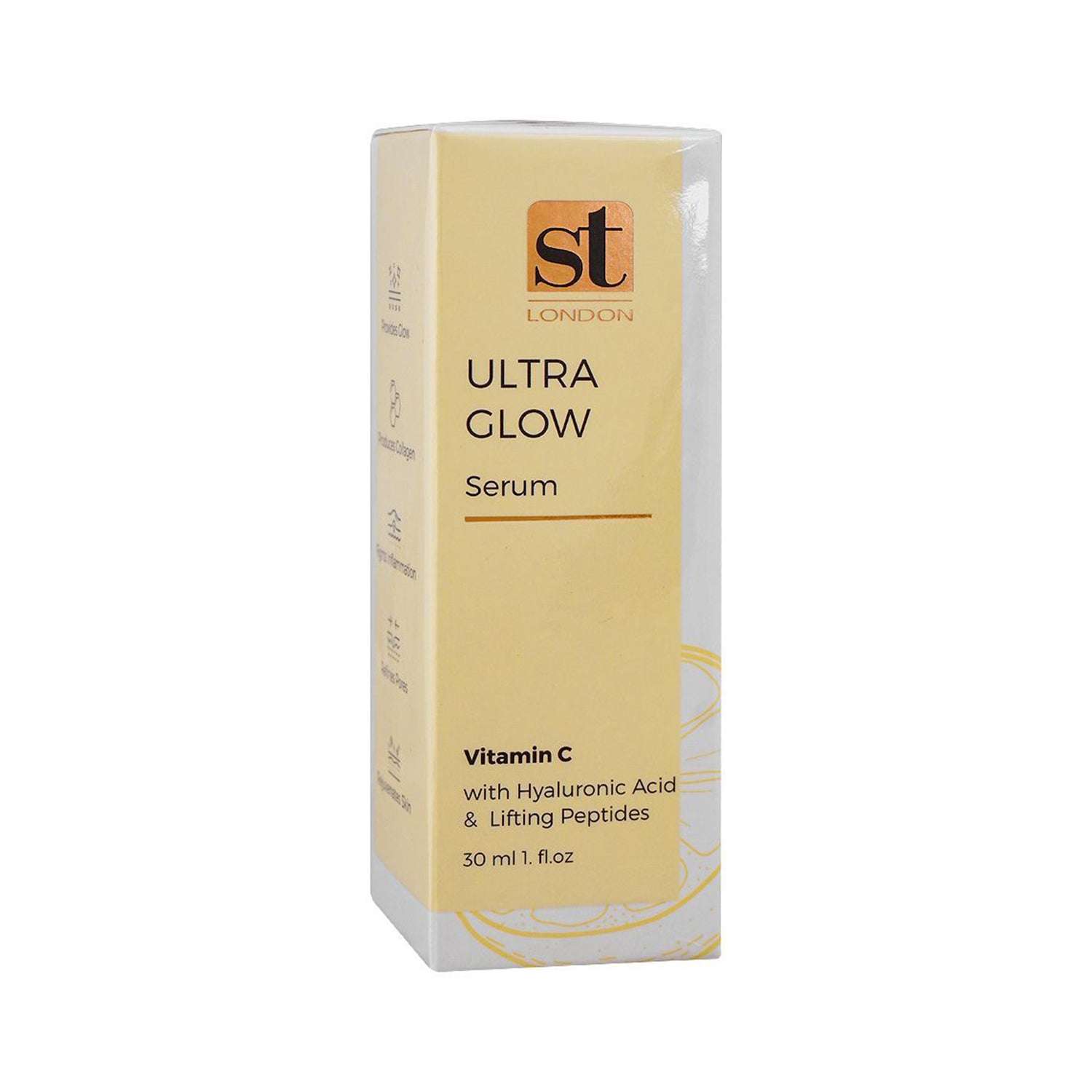 The ST London Ultra Glow Serum 30ML, a strong blend of hyaluronic acid and vitamin C, shows off your most glowing skin. With its deep hydration and radiant shine, this highly active serum will surely be your finest skincare partner. By decreasing inflammation, increasing collagen synthesis, and shrinking pores, it aims to improve the look and feel of your skin.