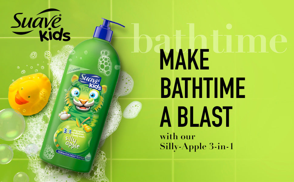 Make bath time easy and fun with Apple-Scented Kids 3-in-1 Shampoo, Conditioner & Body Wash. This tear-free, all-in-one formula refreshes both hair and skin, leaving behind a sweet apple fragrance without any residue. Dermatologist-tested and gentle enough for active kids, it ensures clean, soft hair and skin with every wash. A top choice in kids' hair and body care for a fresh, sweet-smelling experience.