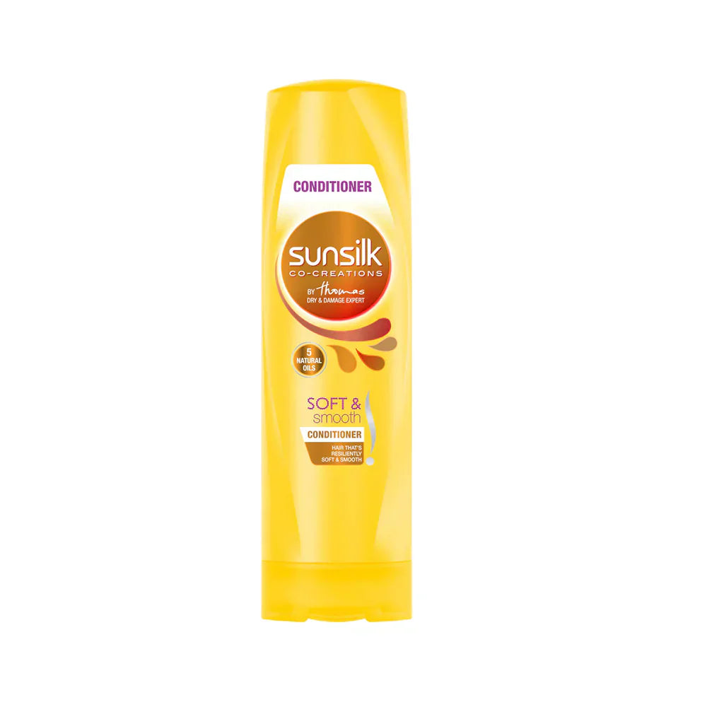 Sunsilk Soft & Smooth Conditioner is specially formulated to deeply moisturize and soften dry hair, restoring smoothness and shine from root to tip. Enriched with 5 natural oils, this rich conditioner helps lock in moisture and improve texture, leaving your hair silky, soft, and easy to manage. Ideal for daily use, it transforms rough strands into touchably soft, healthy-looking hair.