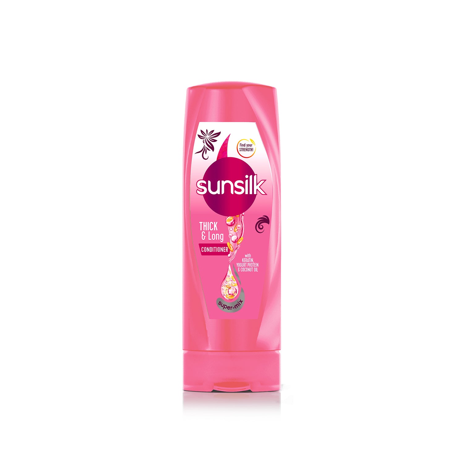 Sunsilk Thick & Long Conditioner is enriched with the powerful Keratin Yoghurt Complex to deeply nourish and strengthen hair from root to tip. Designed to give you 2X visibly thicker and longer-looking hair, this rich, creamy formula adds bounce, body, and shine while taming dryness and breakage. Ideal for fine, limp, or thinning hair, it complements your thickening routine for hair that looks lush, voluminous, and healthy.