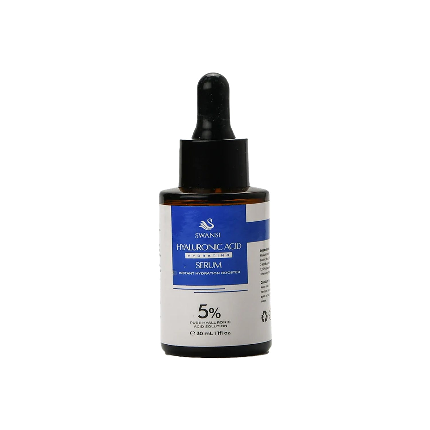 Unleash the power of Swansi's Hyaluronic Acid Hydrating Serum. Our serum locks moisture into your skin for up to 24 hours, while also replenishing hydration and restoring your skin barrier. Enriched with natural antioxidants, it strengthens your skin's moisture barrier and protects it from sun damage and free radicals. Achieve a healthy, glowing complexion with regular use.