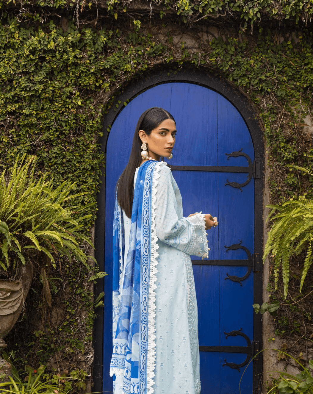 Wild lily offers a youthful tale in the shades of ice blue, which features intricately, rendered embroideries on a cool ice blue canvas. A classically elegant look is combined with breezy printed chiffon dupatta and pants with embroidered border, which serves as a perfect choice for this summer season.