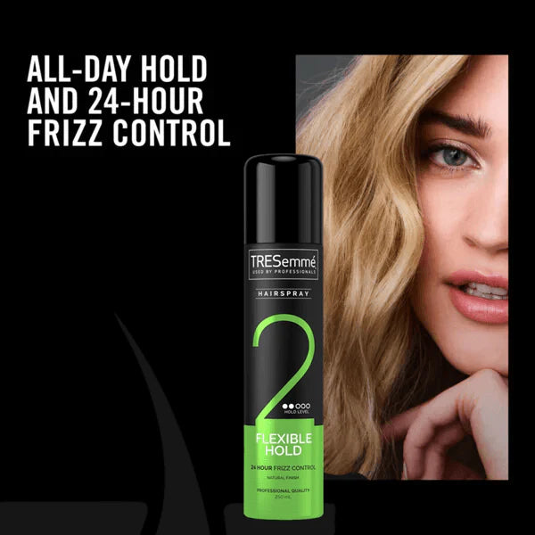The Tresemme Flexible Hold Hairspray offers 24-hour frizz control and a natural finish. With a hold level of 2 out of 5, this professional-quality hairspray uses fine mist technology to enhance shine and provide a light, touchable finish. It adds fullness, volume, and flyaway control to your everyday style without buildup or flaking. Easy to brush out with no sticky residue.