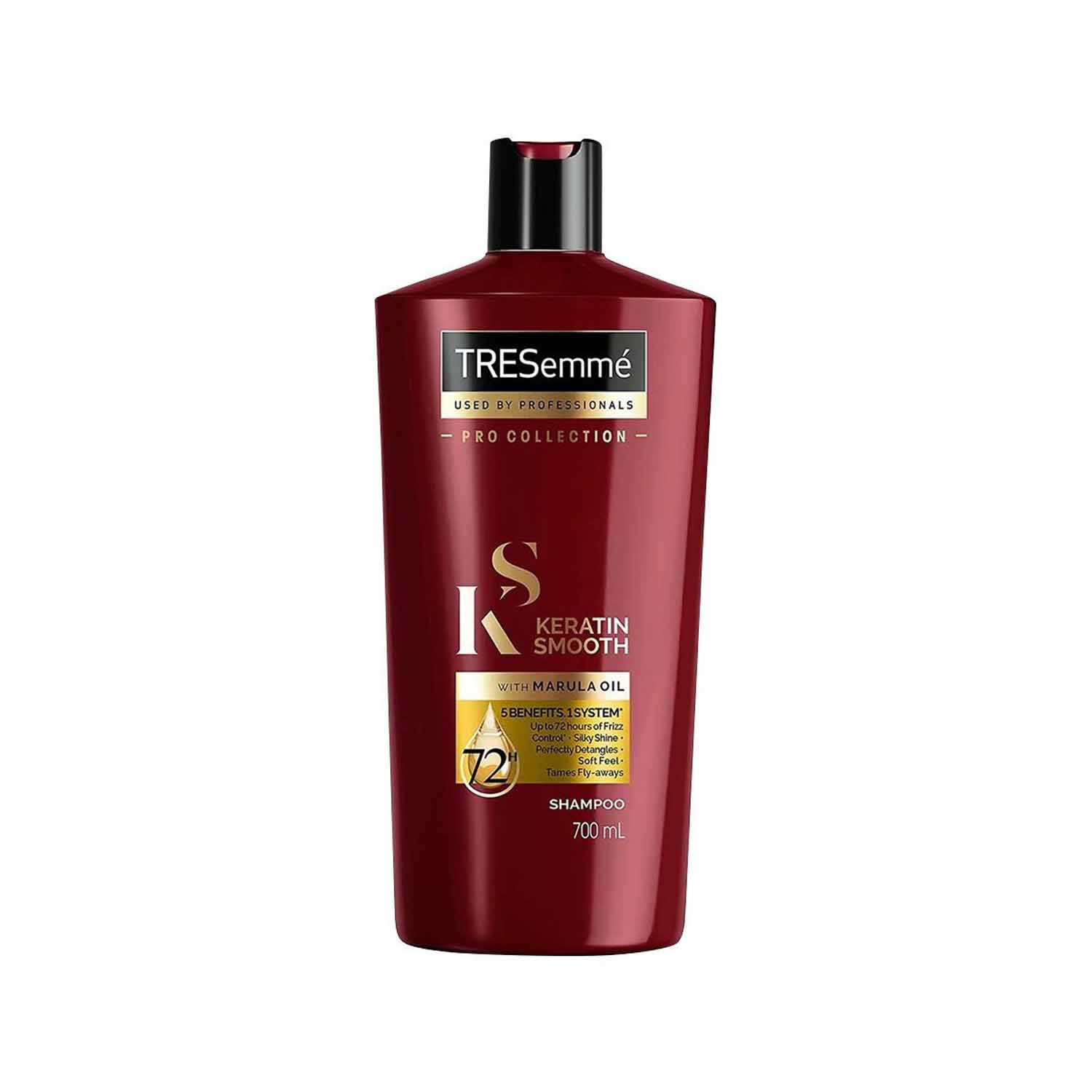 Transform your hair with Tresemme Keratin Smooth Shampoo. This 700ML bottle is infused with marula oil and keratin protein for shiny, silky, and frizz-free locks. Our expert formula gently cleans and nourishes for long-lasting smoothness you'll love. Say goodbye to straight hair, and hello to the perfect balance of smoothness.