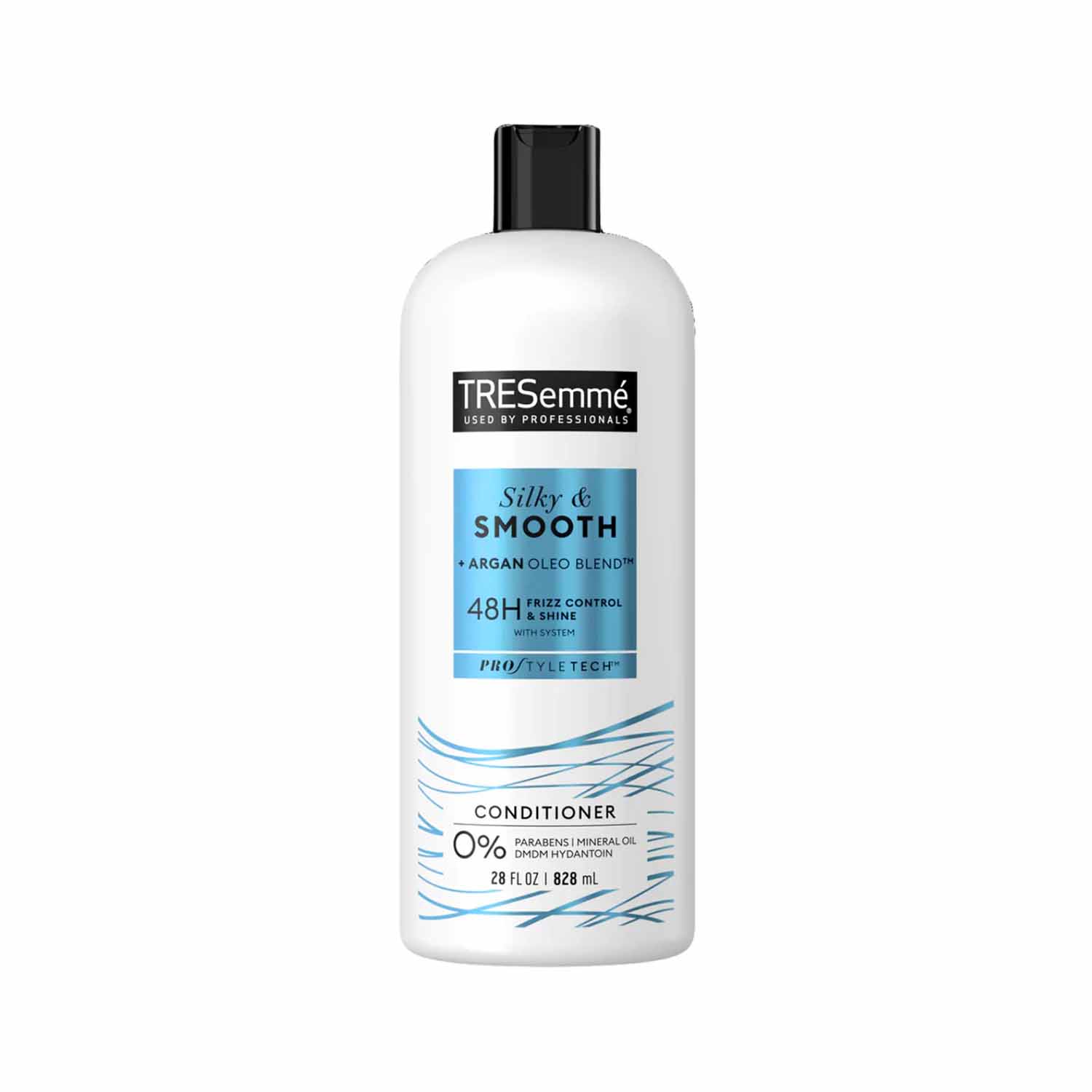 Say goodbye to frizzy hair with TRESemmé Silky & Smooth Conditioner. Infused with Moroccan Argan oil, this conditioner tames flyaways and frizz for salon-soft results. The advanced smoothing system with Argan Oleo Blend provides intense moisture and shiny, manageable hair. Free from harmful chemicals.