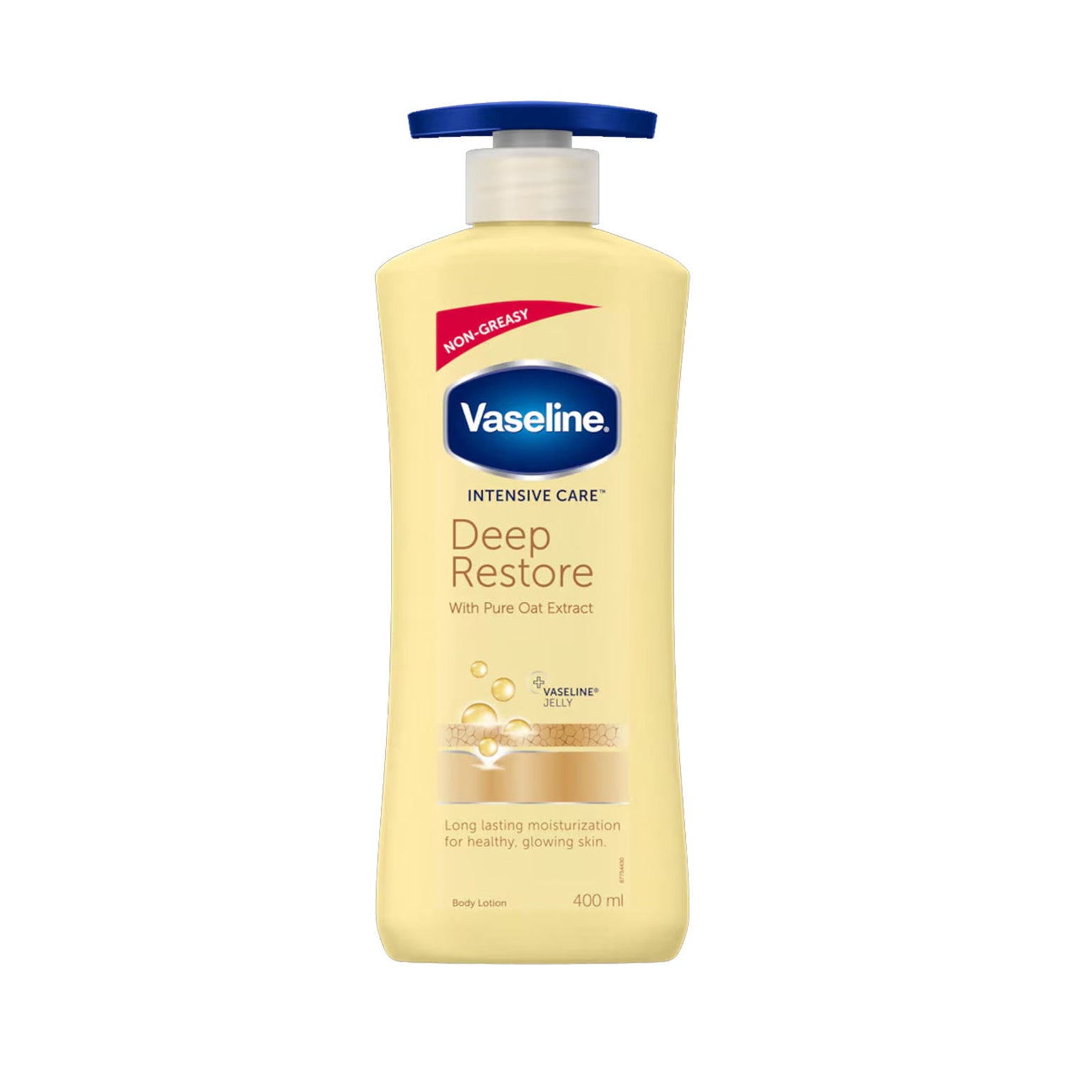Vaseline Intensive Care Deep Restore Lotion provides instant and long-lasting hydration with glycerine, pure oat extracts, and micro-droplets of Vaseline Jelly. This fast-absorbing formula nourishes dry skin, leaving it smooth, soft, and glowing. Ideal for daily use to restore healthy skin.