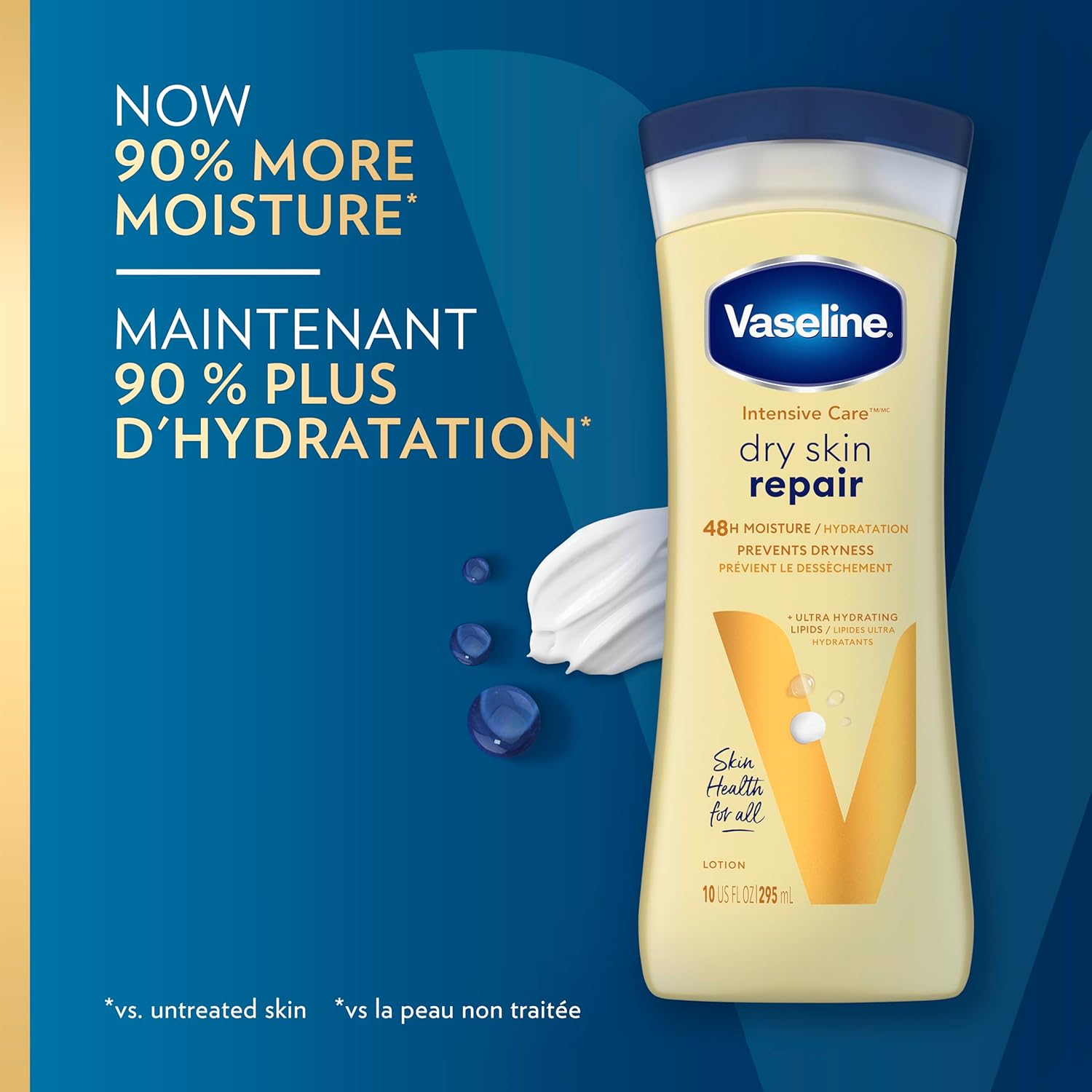 Vaseline Intensive Care Nourishing Moisture Ultra Hydrating Lotion provides 48 hours of deep hydration with ultra-hydrating lipids. This dermatologist-tested, fast-absorbing formula nourishes and repairs dry skin, leaving it soft, smooth, and healthy. Ideal for daily use on all skin types.