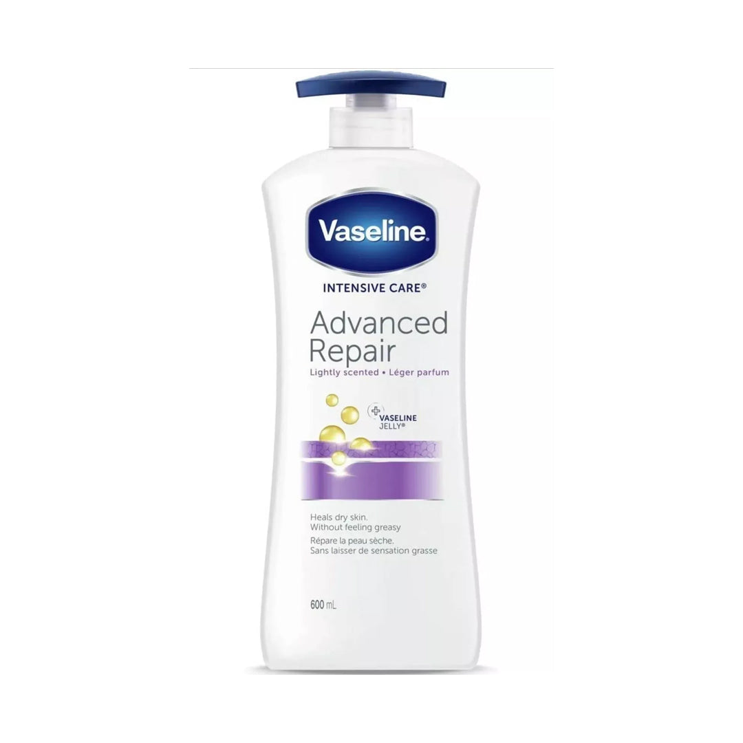 Vaseline Intensive Care Advanced Repair Lotion delivers deep hydration and healing for extremely dry, rough skin. Enriched with micro-droplets of Vaseline jelly, this fast-absorbing, non-greasy lotion restores the skin’s natural barrier. Lightly scented and dermatologist-tested, perfect for daily use on elbows, heels, and knees.