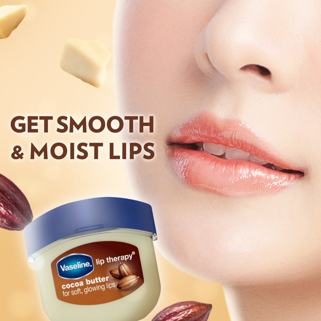 Vaseline Lip Balm Cocoa Butter Mini provides rich hydration and healing for dry, chapped lips. Infused with nourishing cocoa butter, it moisturizes deeply, restores softness, and protects lips by locking in moisture. This creamy, smooth lip balm glides on effortlessly, making it perfect for daily lip care and on-the-go use.