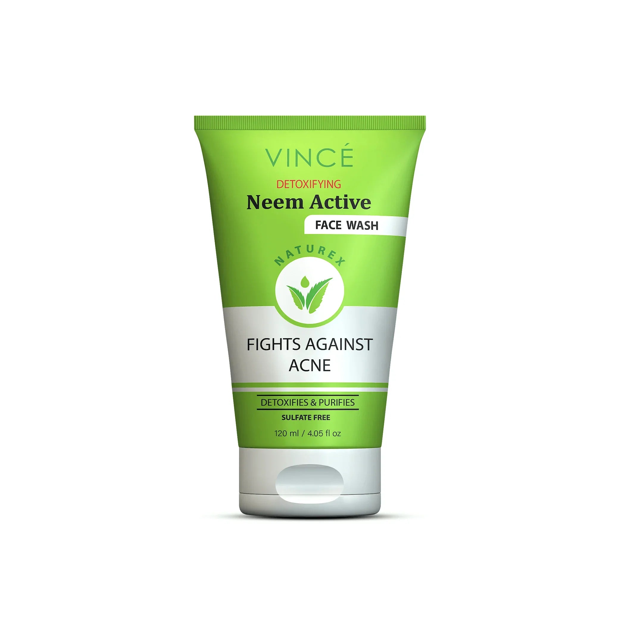 Deeply cleanse and purify your skin with Vince Detoxifying Neem Active Face Wash, enriched with anti-microbial Neem extract to combat acne, control excess oil, and prevent breakouts. This exfoliating formula removes impurities and dead skin cells, revealing a clear, refreshed, and naturally glowing complexion. Perfect for oily and acne-prone skin, it promotes a brighter, healthier look with every wash.