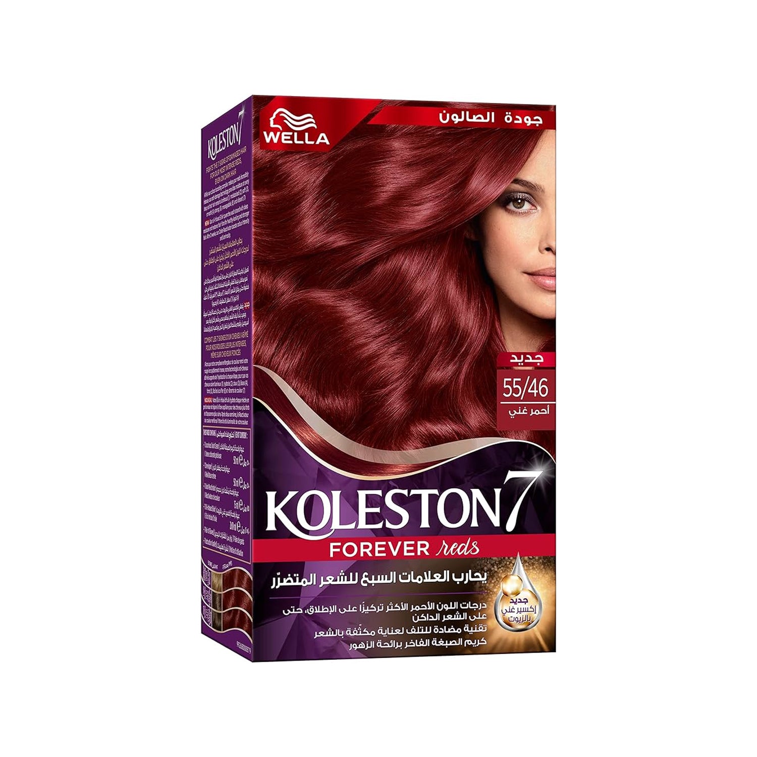 Reveal your hair's true beauty with Wella Koleston 7 Supreme Hair Dye 55/46 Intense Grenat. This permanent color cream provides complete gray coverage while deeply hydrating and adding a radiant shine. Its patented formula promotes seven signs of healthy hair and includes an Advanced Intense Gloss Treatment and Color Reactivator for optimal results.
