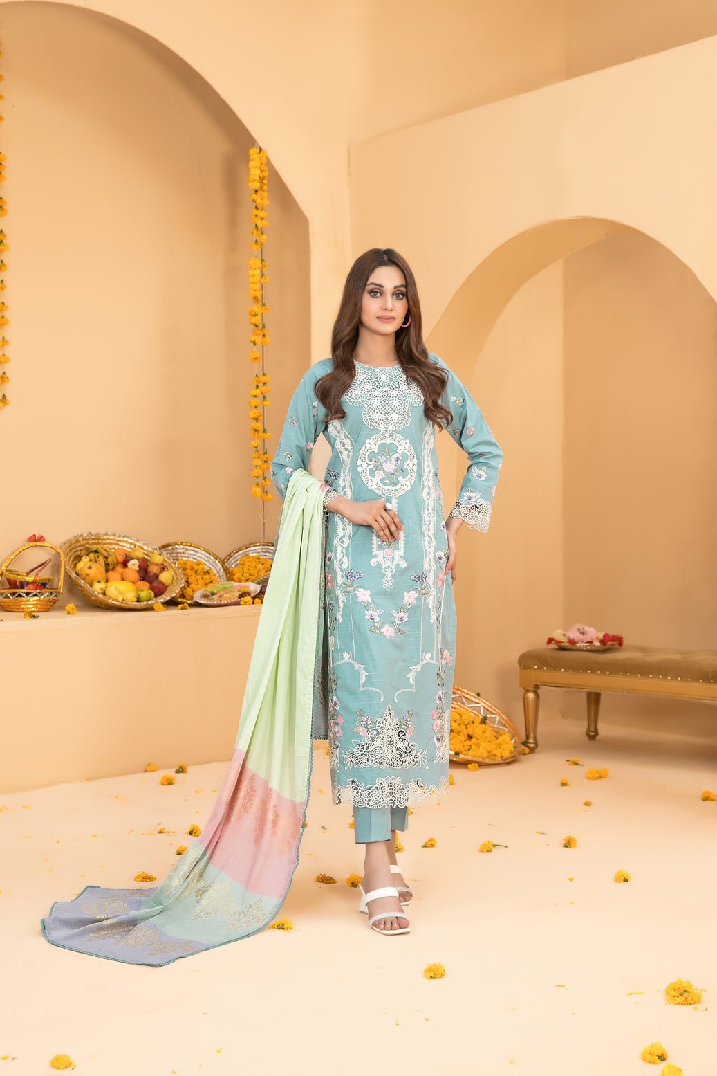 3 Piece Semi-Stitched Collection By Tawakkal Fabrics, Attractive & Elegant Lawn Collection comes with:– Semi-Stitched Fancy Heavy...