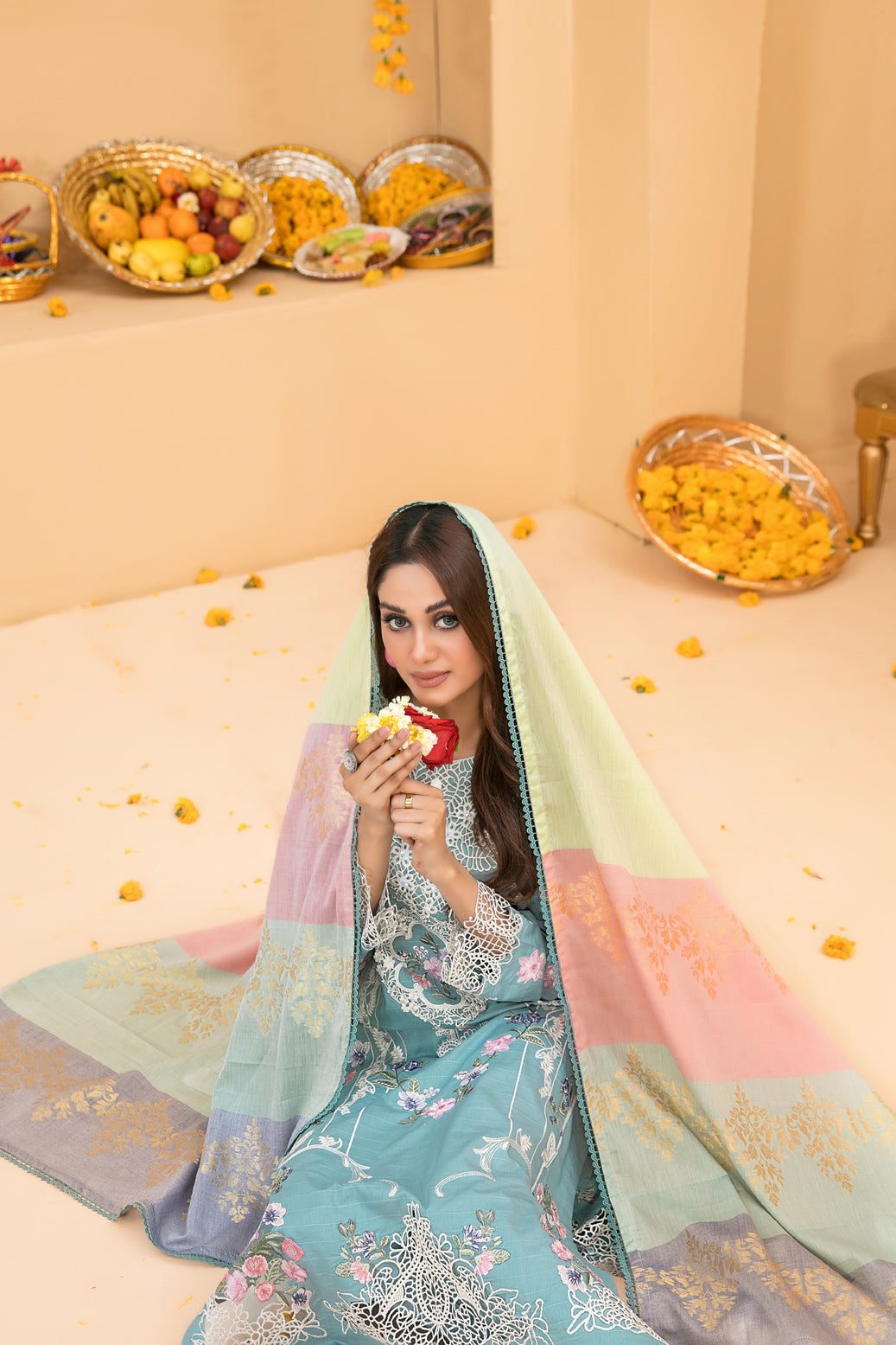 3 Piece Semi-Stitched Collection By Tawakkal Fabrics, Attractive & Elegant Lawn Collection comes with: