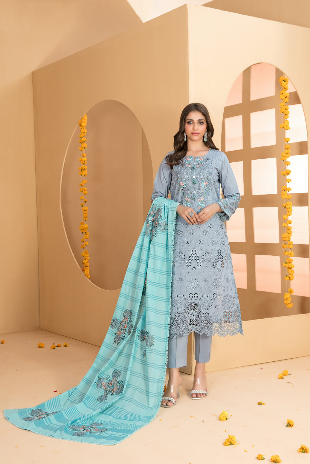 3 Piece Semi-Stitched Collection By Tawakkal Fabrics, Attractive & Elegant Lawn Collection comes with: