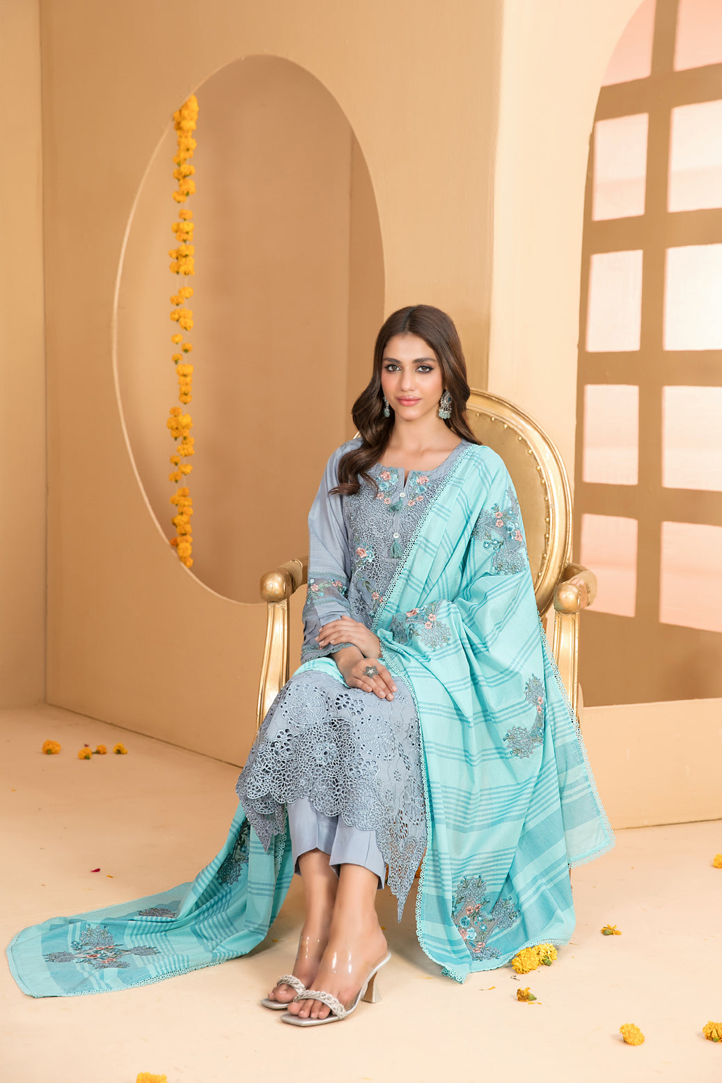 3 Piece Semi-Stitched Collection By Tawakkal Fabrics, Attractive & Elegant Lawn Collection comes with:– Semi-Stitched Fancy Heavy...
